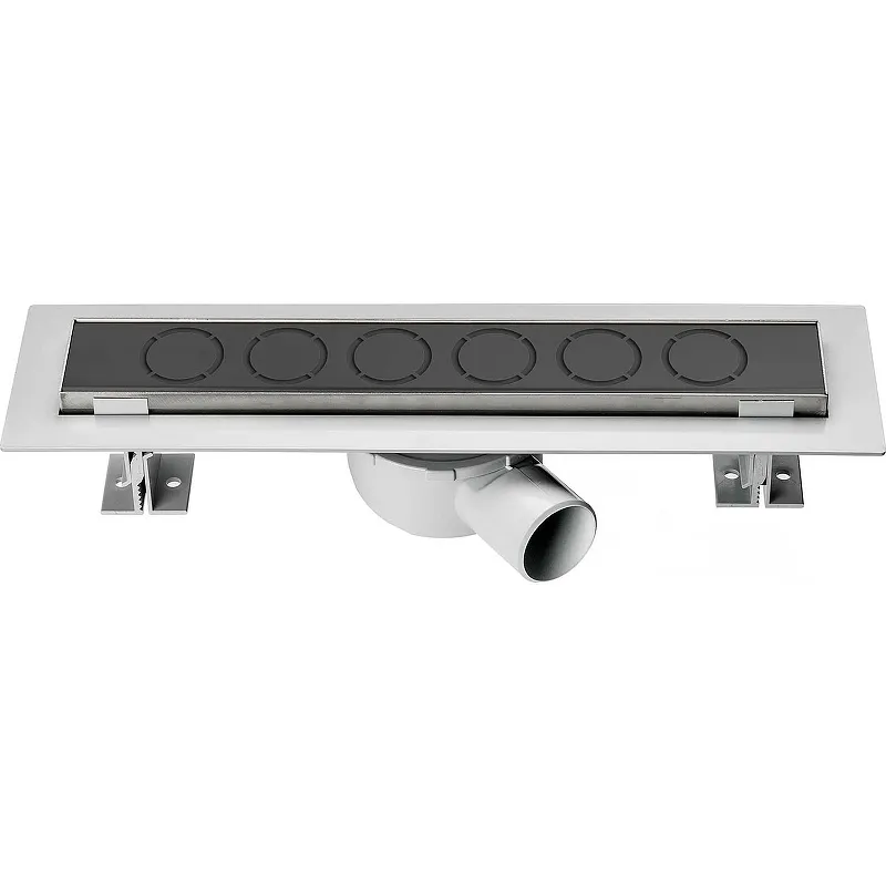 Душевой лоток Vincea Optima 60 SAY.601.60.B.M.S.NSNGH.Характеристики: Цвет решетки: черный матовый. Материал решетки: нержавеющая сталь. Форма: прямоугольная. Вид решетки: NISANGAH, перфорированная со щелью для воды. Направление выпуска: горизонтальный. Максимальная пропускная способность: 48 л/мин. Диаметр слива: 50 мм. Расположение: вровень с полом. Монтаж: в пол, около стены. Регулировка по высоте: 4,6-6,6 см. Тип затвора: сухой. В комплекте поставки: Поворотный сифон 360 градусов из ABS-пластика. Водонепроницаемые уплотнительные кольца. Дренажный канал из ABS-пластика. Противозапаховый затвор. Водонепроницаемая мембрана. Рамка и решетка из нержавеющей стали 2 мм. Комплект регулируемых по высоте опор. Пластиковый сервисный ключ. Регулировочный винт из нержавеющей стали. Регулировка соединения.