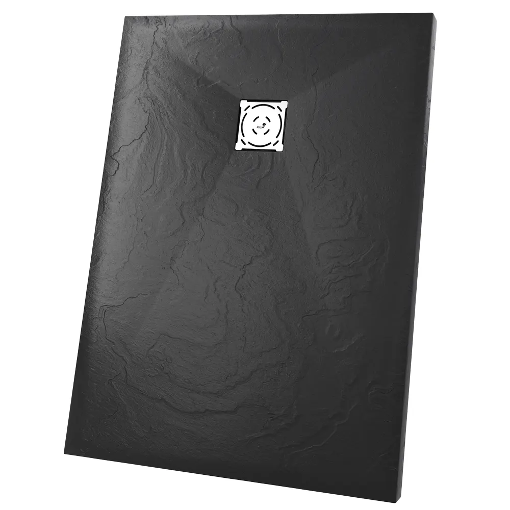 - Уникальный дизайн: Черный цвет и текстура "под камень" придают поддону элегантный вид, который идеально сочетается с душевыми системами и аксессуарами.