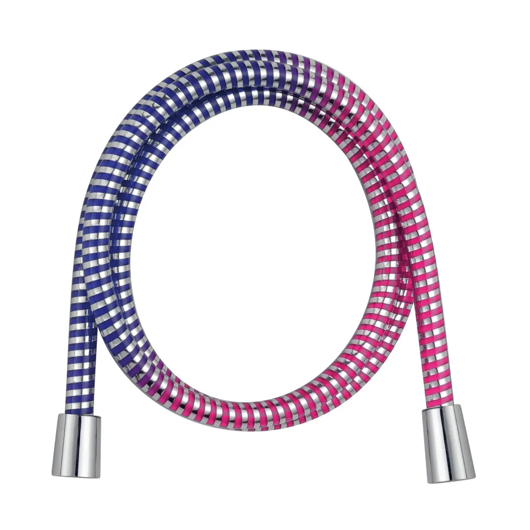 шланг душевой PVC c имитацией металлизированной оплётки, термоиндикаторная функция (шланг меняет цвет при нагреве температуры воды), латунные гайки mp*imp (1/2х1/2), упорный подшипник свободного вращения 360°, длина 1500мм, диаметр ø16мм, макс. давление 16 бар