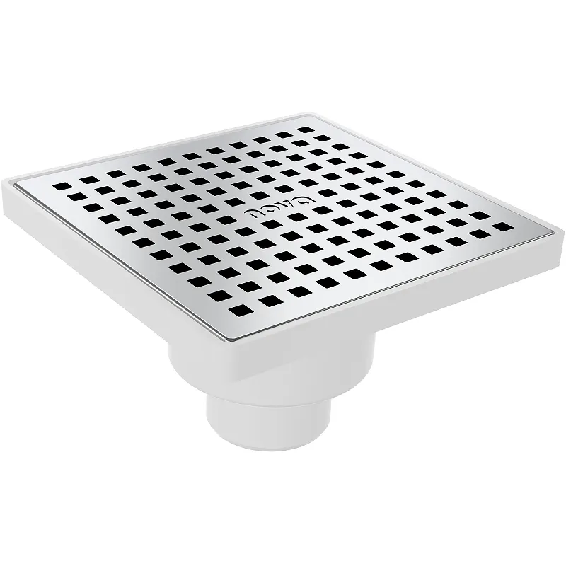 Душевой трап Nova 5036.Характеристики: Цвет решетки: хром. Материал решетки: нержавеющая сталь.. Материал корпуса: полипропилен, устойчивый к механическим, химическим и термическим повреждениям. Габариты (ШхВхД): 150х60х150 мм. Направление выпуска: вертикальное. Вид решетки: перфорированная. Подключение к канализационному стоку: диаметр 50 мм. Вид затвора: сухой. В комплекте поставки: Душевой трап.