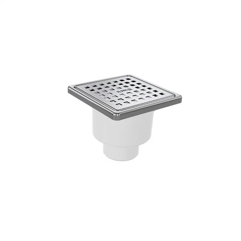 Трап сантехнический с решеткой из нержавеющей стали с рамкой 10*10, нижний, Ø50