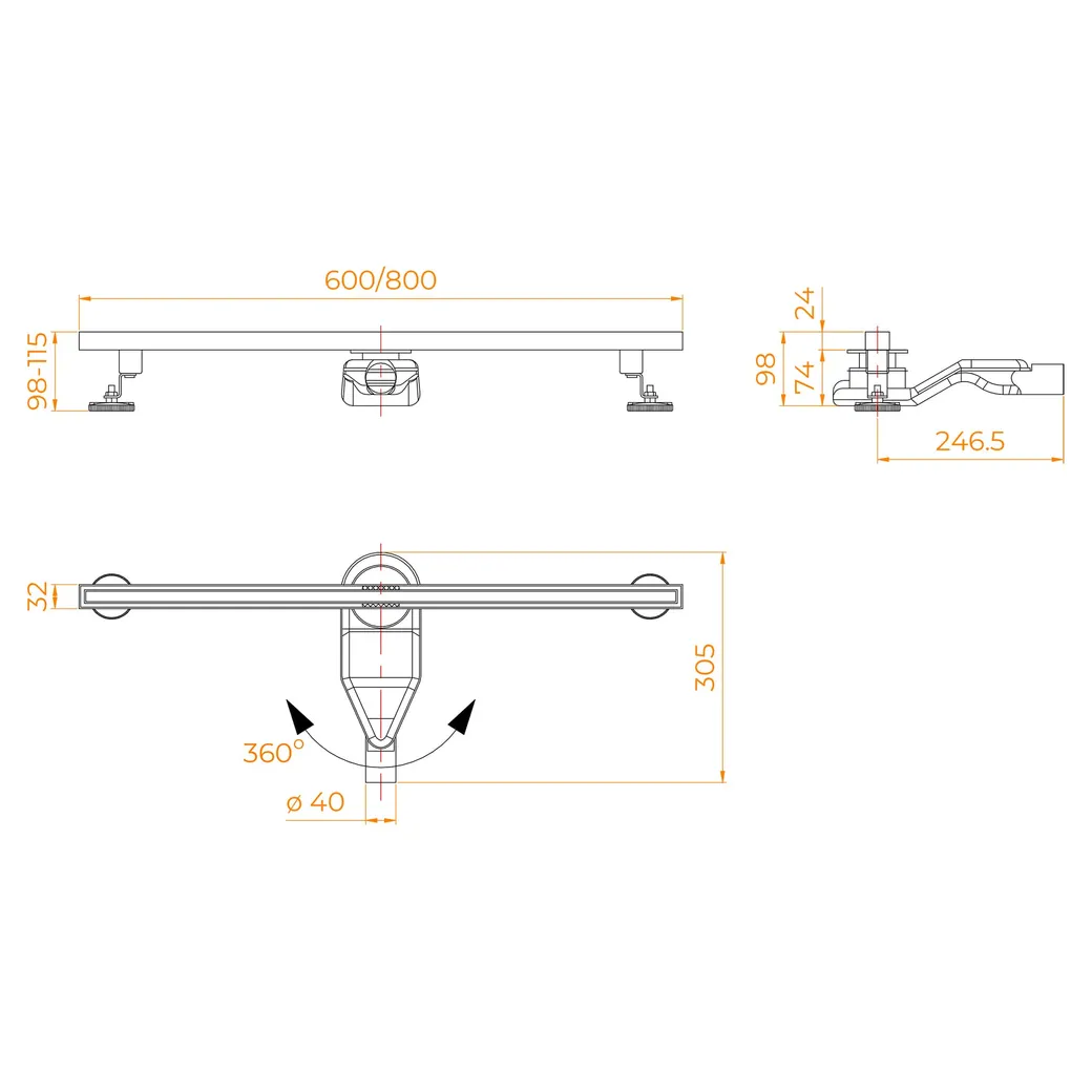 Диаметр слива: 40/50 мм (переходник) Размер трапа: 600;800 мм Форма трапа: Линейный Цвет решетки трапа: Матовый хром, B - Чёрный - матовый, Gg - оружейная сталь, Gb – золото brush Крышка и лоток из нержавеющей стали AISI 304 Крышка для вкладки плитки Пропускная способность: 25 л/мин. Сухой+гидро затвор – 100 защита от неприятных запахов Съёмный фильтр для улавливания волос - быстрый доступ с верху для очистки Поворотный сифон для подключения с любой стороны Две усиленные опоры из нержавеющей стали с регулировкой высоты Установка в один уровень с плиткой Гидроизоляционная лента в комплекте Серия: SDR Страна производитель: Россия / Германия Гарантия: 3 года