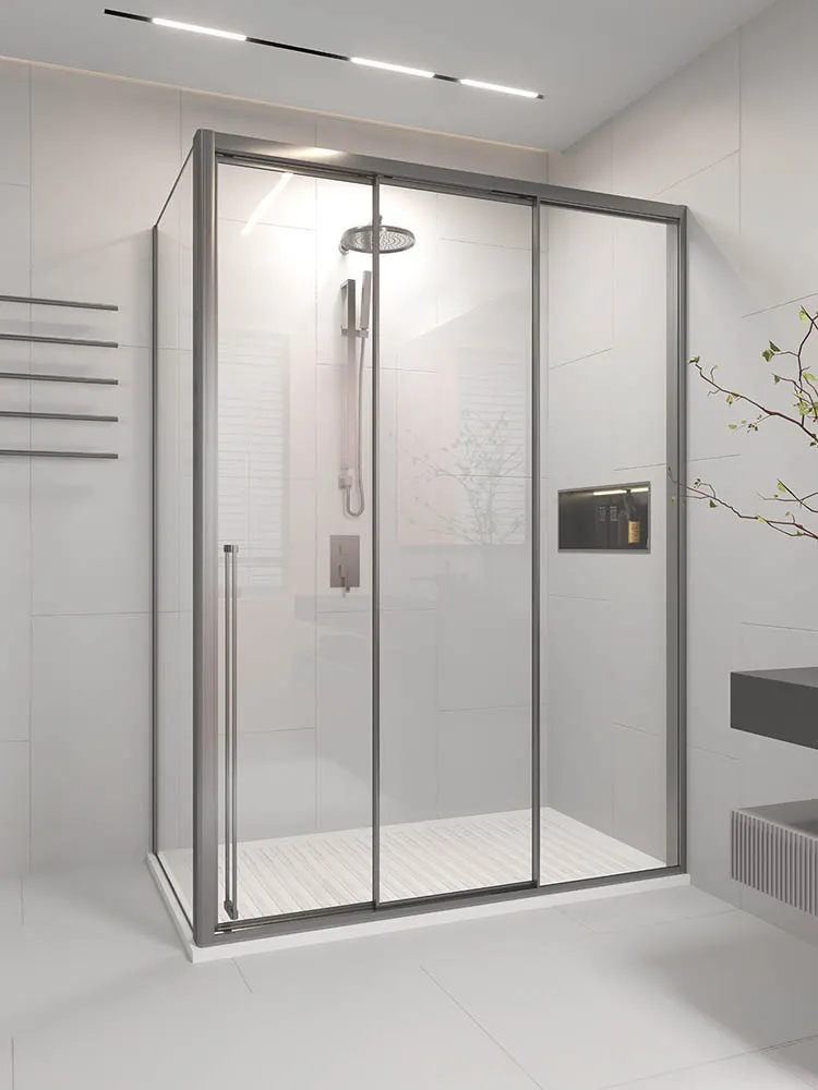 Душевой угол раздвижной Veconi Premium Ptato 300 SP GR-R, 1600х800x2000, брашированный графит, стекло прозрачное арт-PR3/R-SP-16080-01-GR-C4