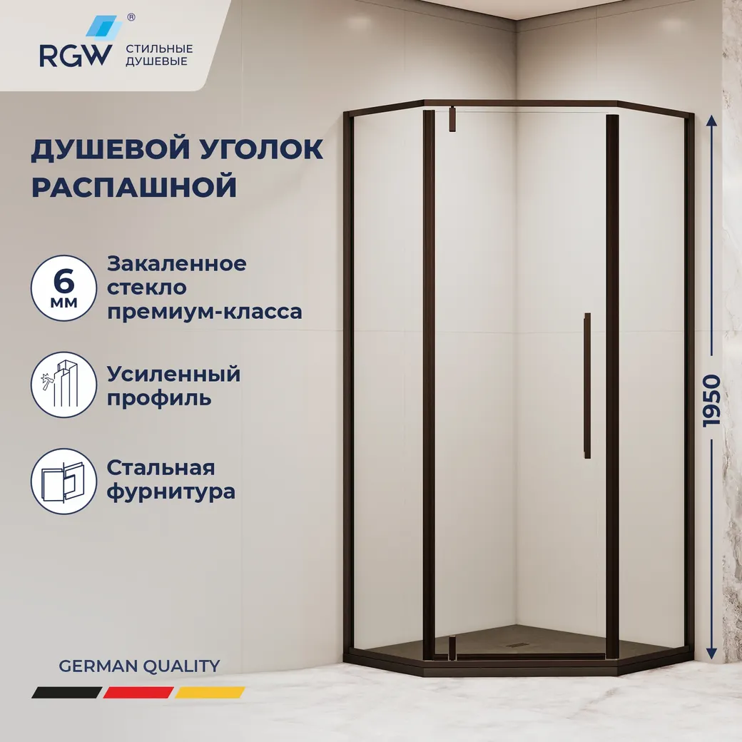Откройте для себя стильный и функциональный душевой уголок 100x100 от бренда RGW. Этот прозрачный душевой уголок с черным анодированным алюминиевым профилем, выполненный в форме трапеции, станет идеальным дополнением вашей ванной комнаты. Душевой уголок RGW предлагает удобство и долговечность благодаря прочному закаленному стеклу и современным технологиям, таким как покрытие Easy Clean.