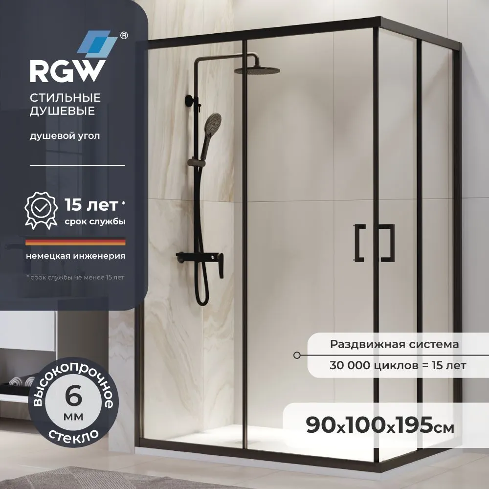 Душевой уголок 90x100 RGW PA-246-B Прямоугольный, Чёрный, Прозрачное стекло