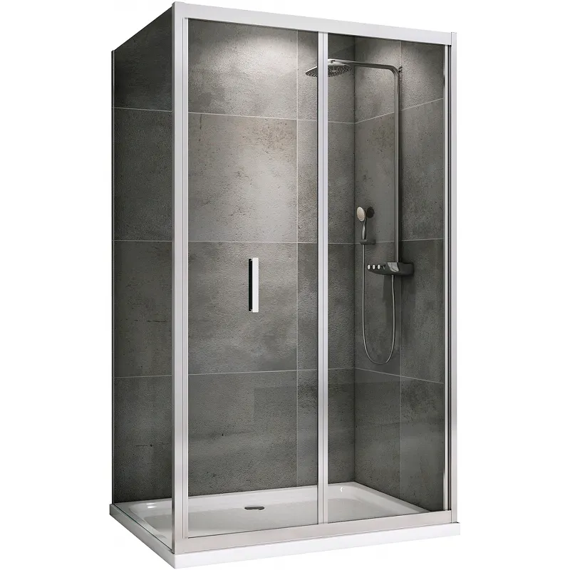 - Душевой уголок с хромированным профилем и прозрачным стеклом.