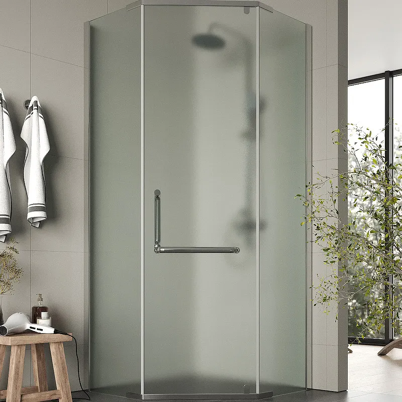Душевой уголок Agger 90x90 — это стильное и функциональное решение для вашей ванной комнаты. Выполненный в форме призмы, этот душевой уголок с распашными дверями и хромированным профилем идеально впишется в современный интерьер. Купить душевой уголок Agger стоит для тех, кто ценит надежность и качество. Закаленное матовое стекло толщиной 6 мм обеспечивает долговечность и безопасность.
