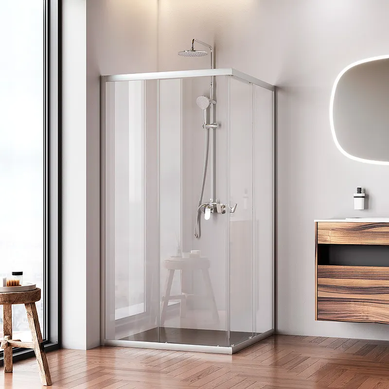 Душевой уголок AM.PM Sunny 100х100 – это практичное решение для современных ванных комнат. Купить душевой уголок от бренда AM.PM с раздвижными дверями и хромированным матовым профилем – значит обеспечить себя комфортом и надежностью. Этот стеклянный душевой уголок без поддона идеально подойдет для установки в угол, сохраняя пространство и стиль интерьера.