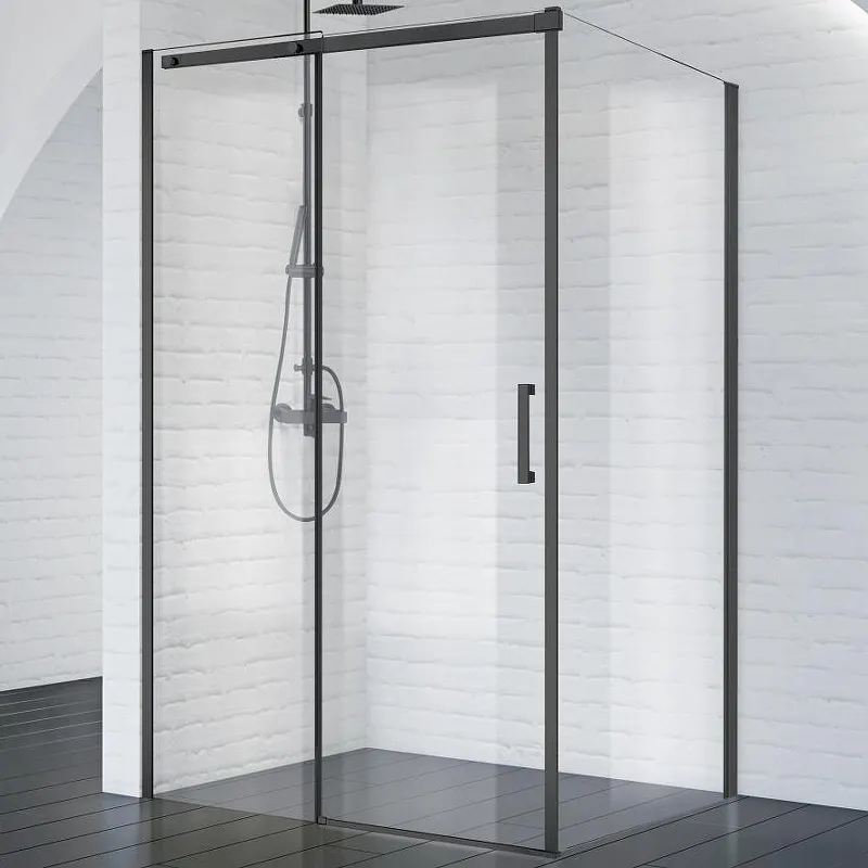 - Современный дизайн: черный матовый профиль и прозрачное стекло создают стильный акцент в интерьере.