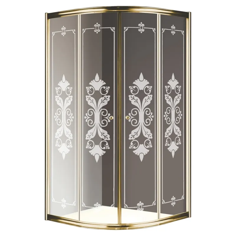 - Элегантный внешний вид: Профиль из анодированного алюминия в золотом цвете и прозрачные стекла с матовым принтом придают изделию изысканность.