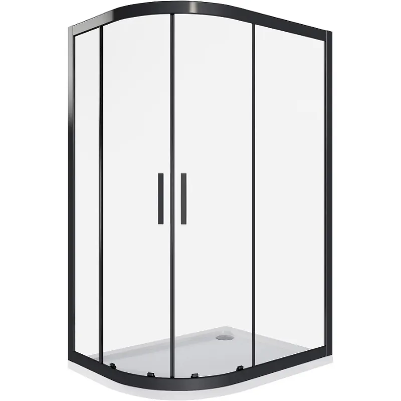 Душевой уголок Good Door Cofe R-120-C-B 120x80 — стильное и функциональное решение для современных ванных комнат. Конструкция с раздвижными дверями и черным алюминиевым профилем легко вписывается в интерьер, а прозрачное закаленное стекло толщиной 5 мм обеспечивает долговечность и безопасность. Уголок предназначен для монтажа на пол или поддон, что делает его универсальным выбором для любых условий.