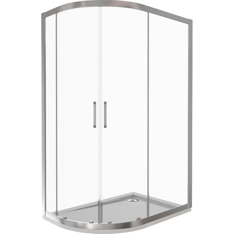 - Компактность и функциональность: Асимметричная форма и раздвижной механизм экономят пространство и подходят для установки на плитку или низкий поддон.