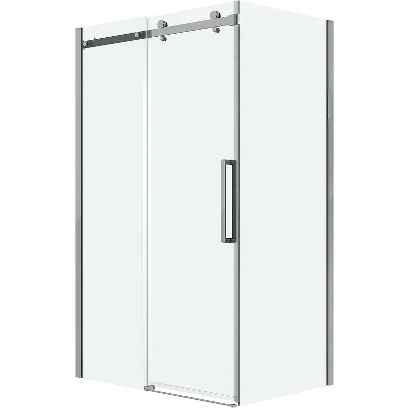 - Эстетика и удобство: Хромированный профиль и раздвижные двери обеспечивают современный вид и экономят пространство.