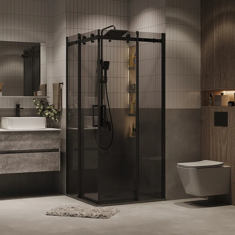 - Тонированное закалённое стекло: Толщина 8 мм обеспечивает безопасность и стильный внешний вид, а тонировка придаёт уединённость.