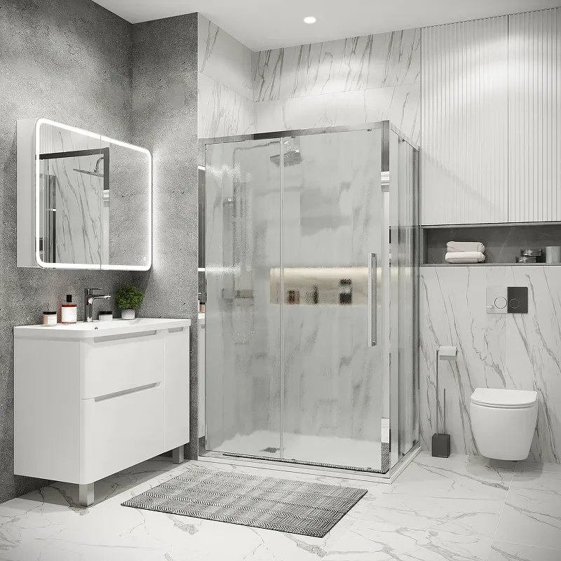 - Закаленное стекло "шиншилла": Толщина 6 мм гарантирует безопасность и эстетическую привлекательность.