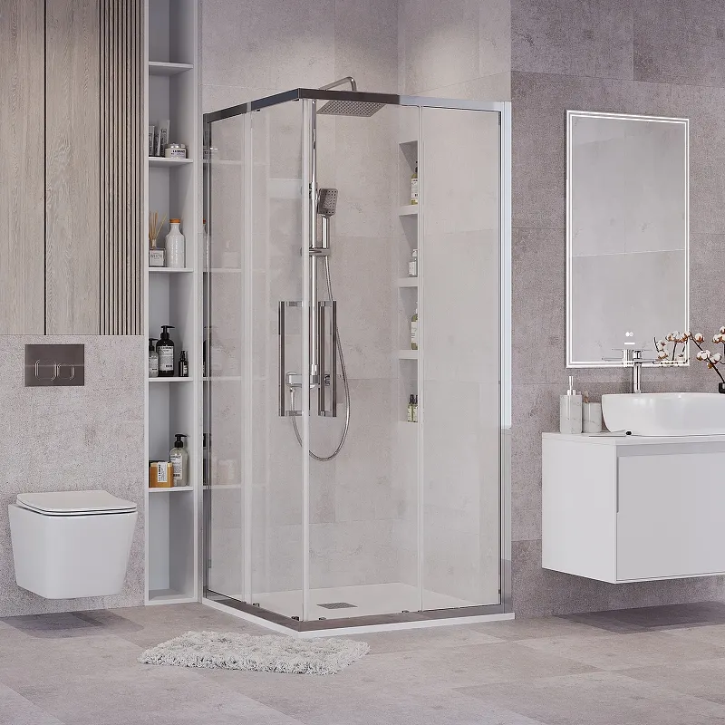 Душевой уголок Grossman Cosmo 90х90 — это стильное и функциональное решение для вашей ванной комнаты. Этот душевой уголок с раздвижными дверями и хромированным профилем идеально подходит для установки в углу, создавая современный акцент в интерьере.
