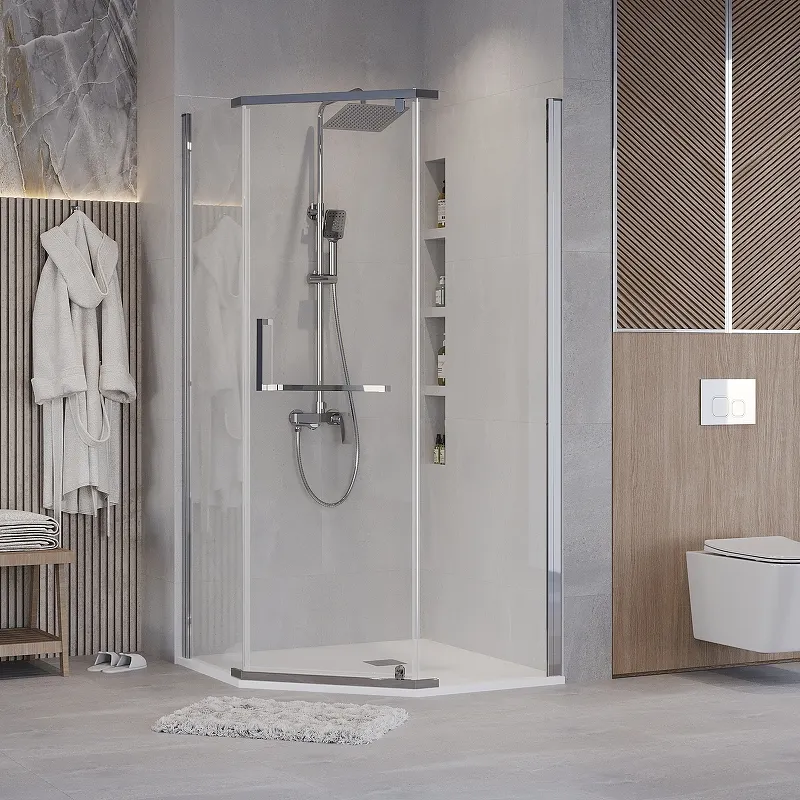 - Элегантный дизайн: Хромированный профиль и прозрачное стекло добавляют изысканности.