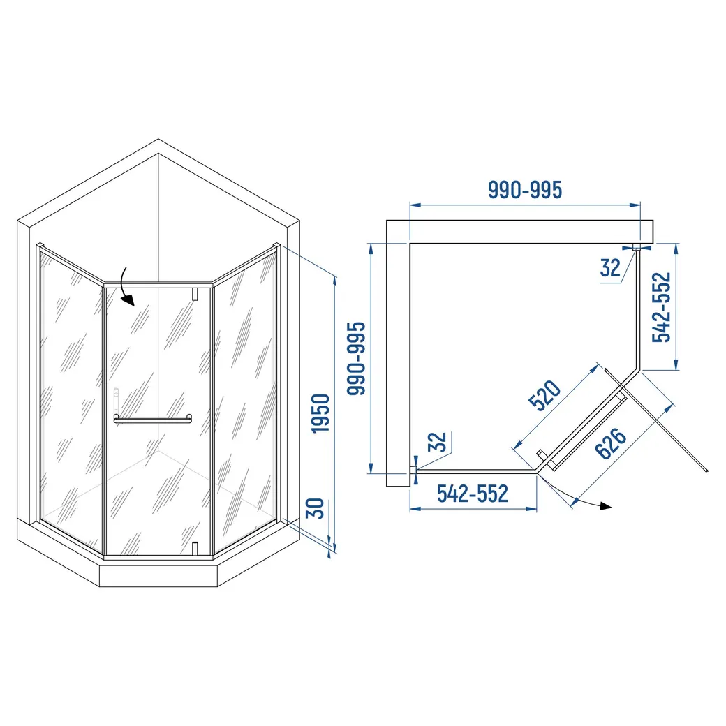 - Тип конструкции: Душевой уголок