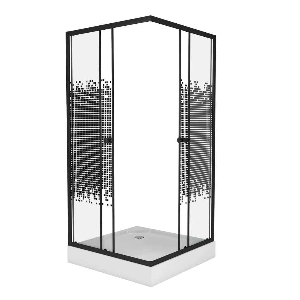 - Стильный дизайн: Черный профиль и стекло с мозаичным узором добавляют элегантности и современности.