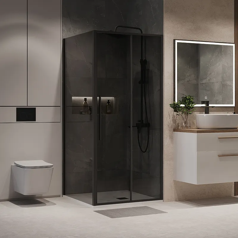 - Эстетика и приватность: Тонированное закаленное стекло толщиной 6 мм обеспечивает как стильный внешний вид, так и необходимую приватность.
