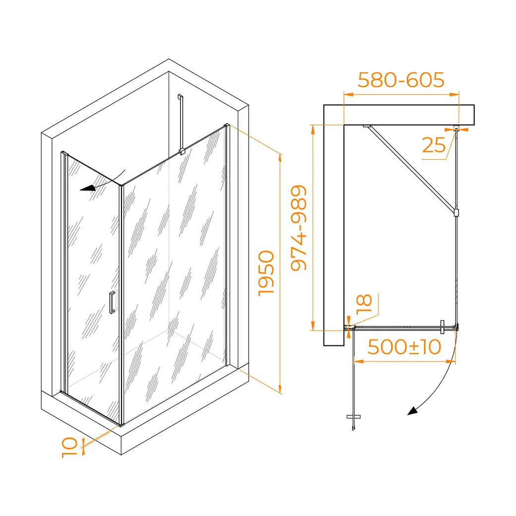 Душевой уголок RGW LE-034 (LE-003 + Z-14) 600x1000 арт-351203460-11