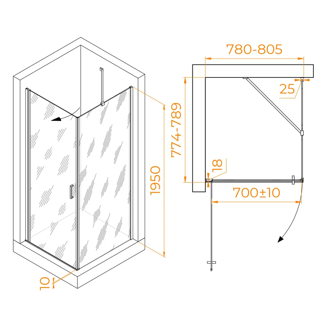 Двери уголка RGW LE-034 изготовлены из прозрачного стекла, что позволяет максимально сохранять естественный и яркий свет внутри душевого помещения. Профиль дверей выполнен в хромированном цвете, что даёт гармоничный и современный внешний вид. Высота душевого угла составляет 1950 мм, что дает достаточно места для комфортного проведения времени внутри душевой комнаты.