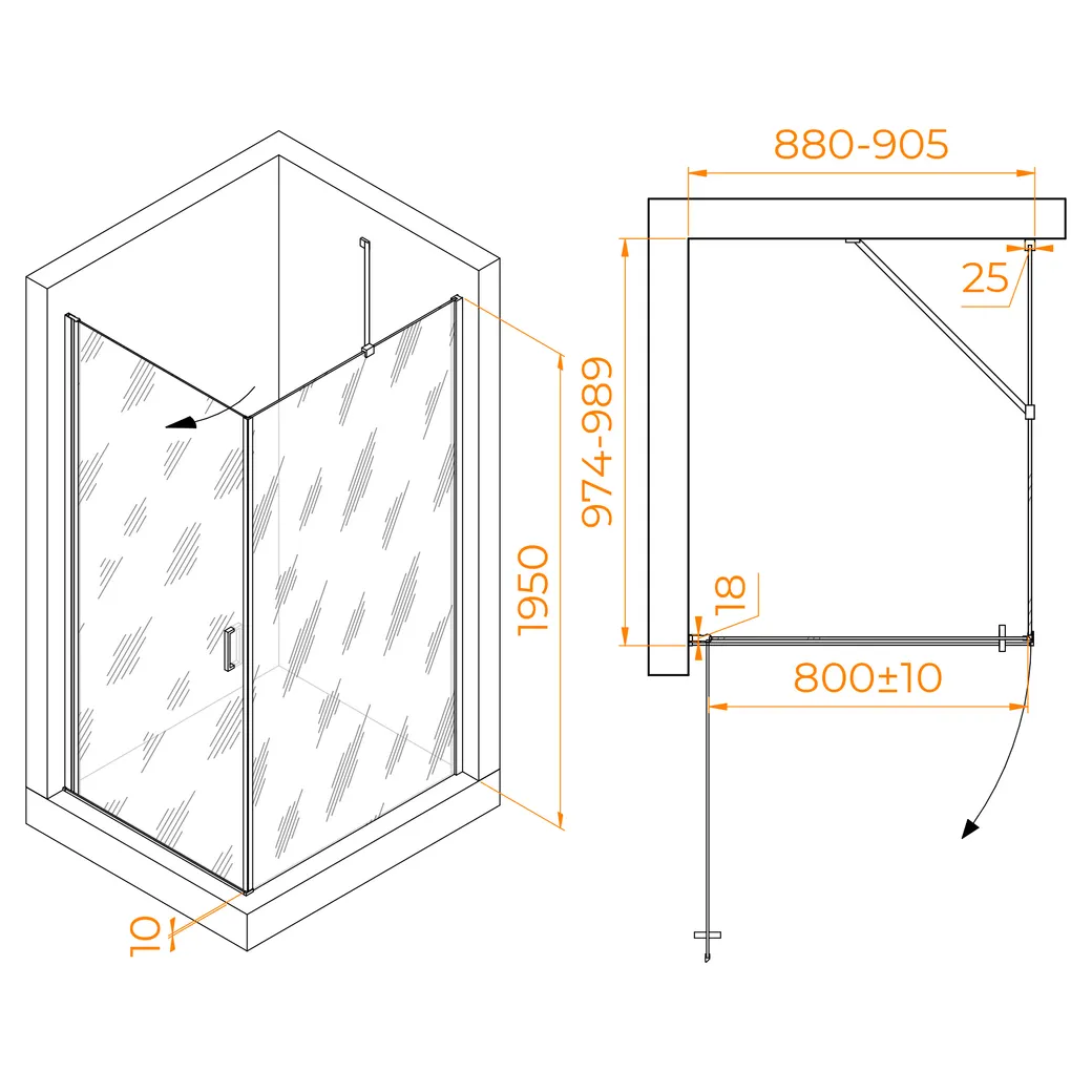 Двери уголка RGW LE-034 изготовлены из прозрачного стекла, что позволяет максимально сохранять естественный и яркий свет внутри душевого помещения. Профиль дверей выполнен в хромированном цвете, что даёт гармоничный и современный внешний вид. Высота душевого угла составляет 1950 мм, что дает достаточно места для комфортного проведения времени внутри душевой комнаты.