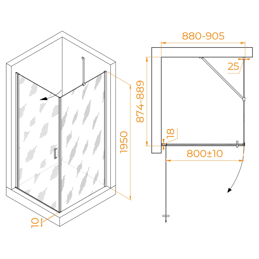 Двери уголка RGW LE-034 изготовлены из прозрачного стекла, что позволяет максимально сохранять естественный и яркий свет внутри душевого помещения. Профиль дверей выполнен в хромированном цвете, что даёт гармоничный и современный внешний вид. Высота душевого угла составляет 1950 мм, что дает достаточно места для комфортного проведения времени внутри душевой комнаты.