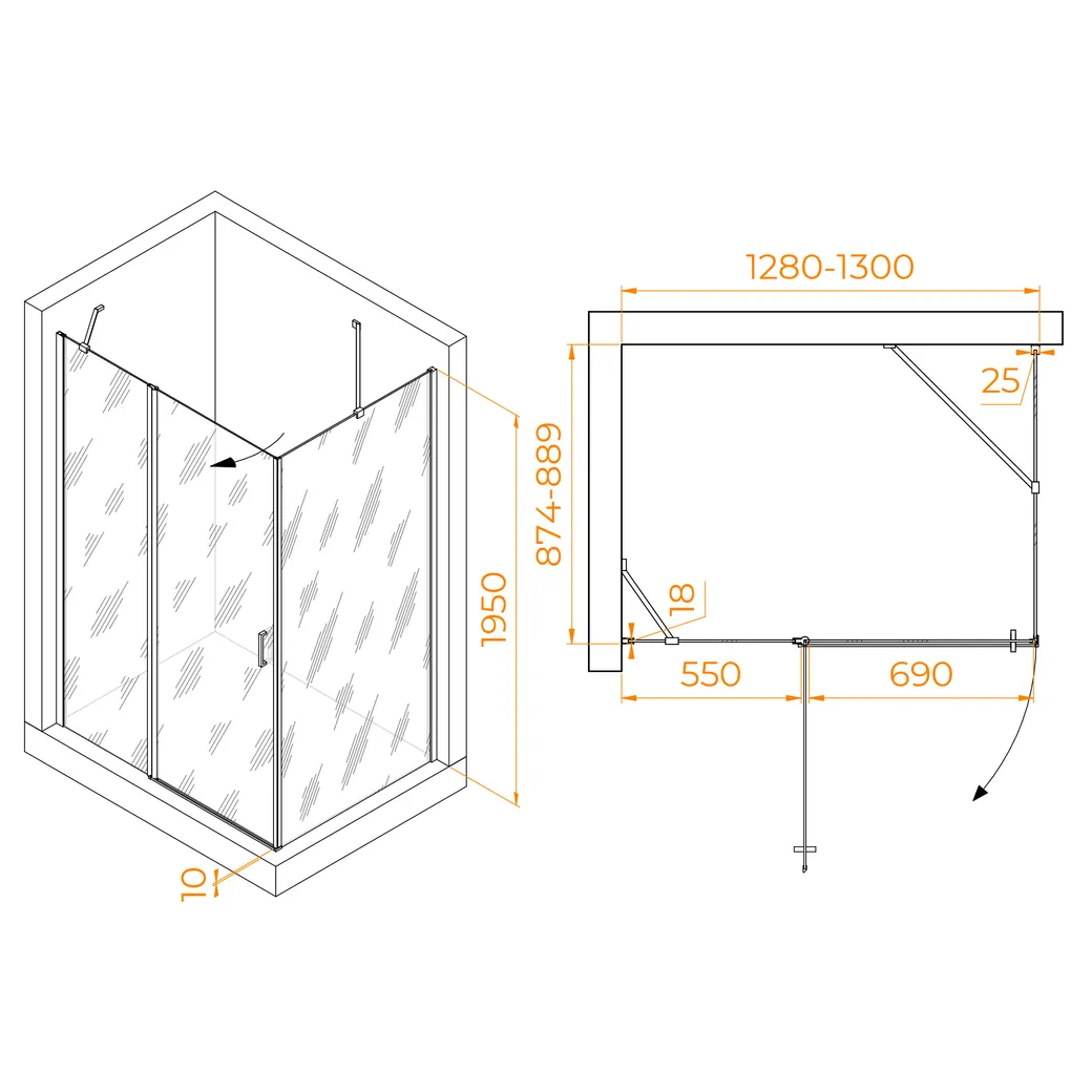 Душевой уголок RGW LE-044 (LE-004+Z-14) 1300x900 06124439-11