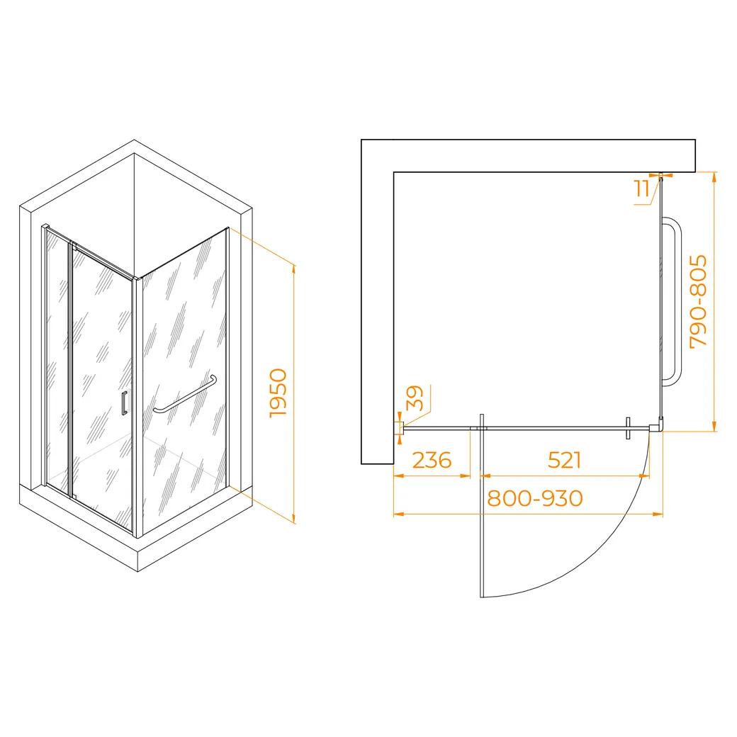 Душевой уголок RGW PA-078-1B (RGW PA-008B + Z-060-2B) 800x800 арт-3508078188-14