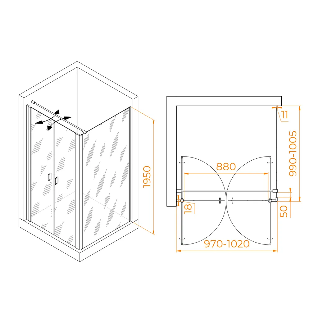 Душевой уголок RGW PA-134 (PA-104+Z-050-2+O-104) 1000x1000 060813400-011