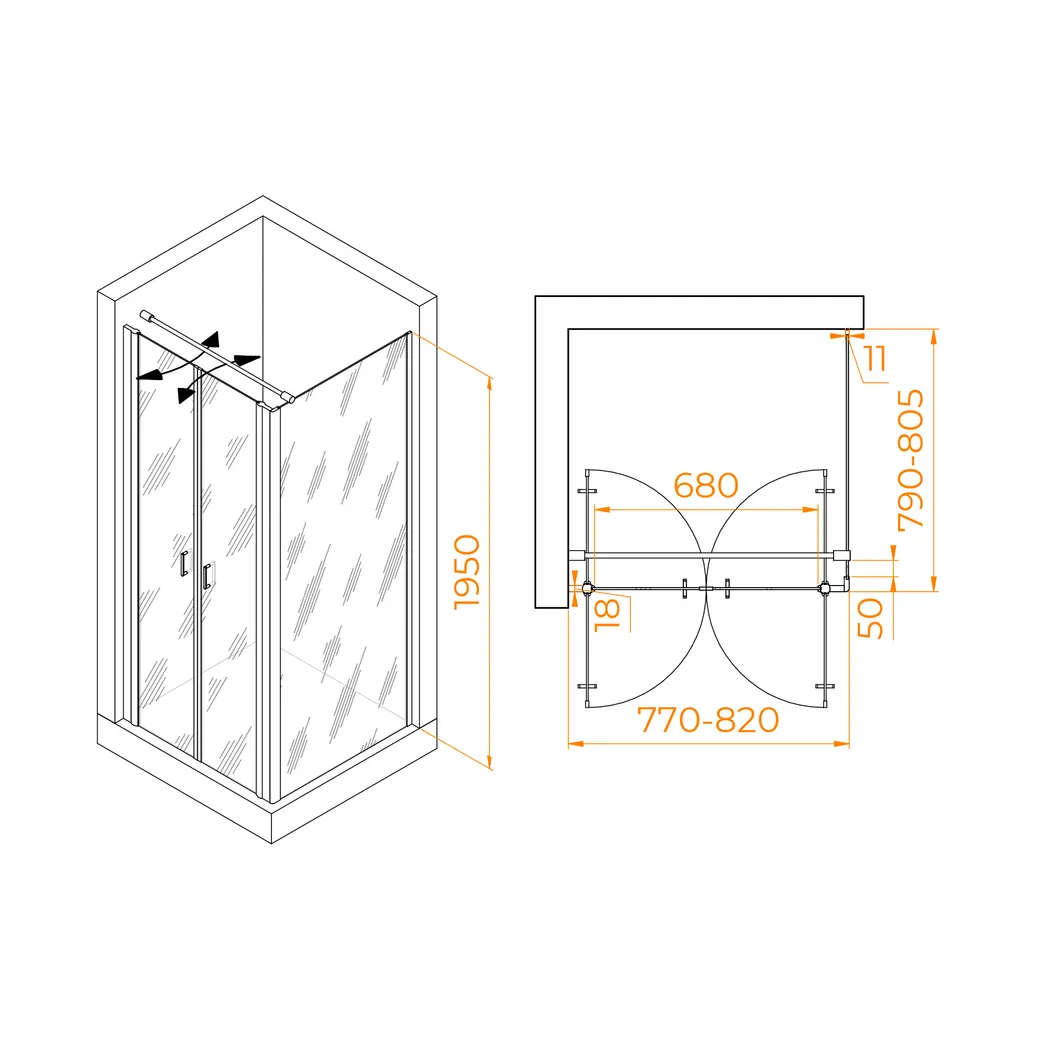 Душевой уголок RGW PA-134 (PA-104+Z-050-2+O-104) 800x800 060813488-011
