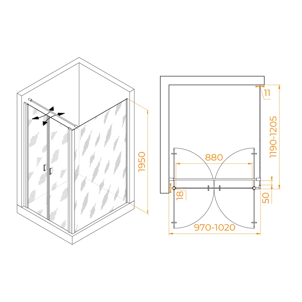 Душевой уголок RGW PA-144 (PA-104+Z-050-2+O-104) 1000x1200 арт-060814402-011