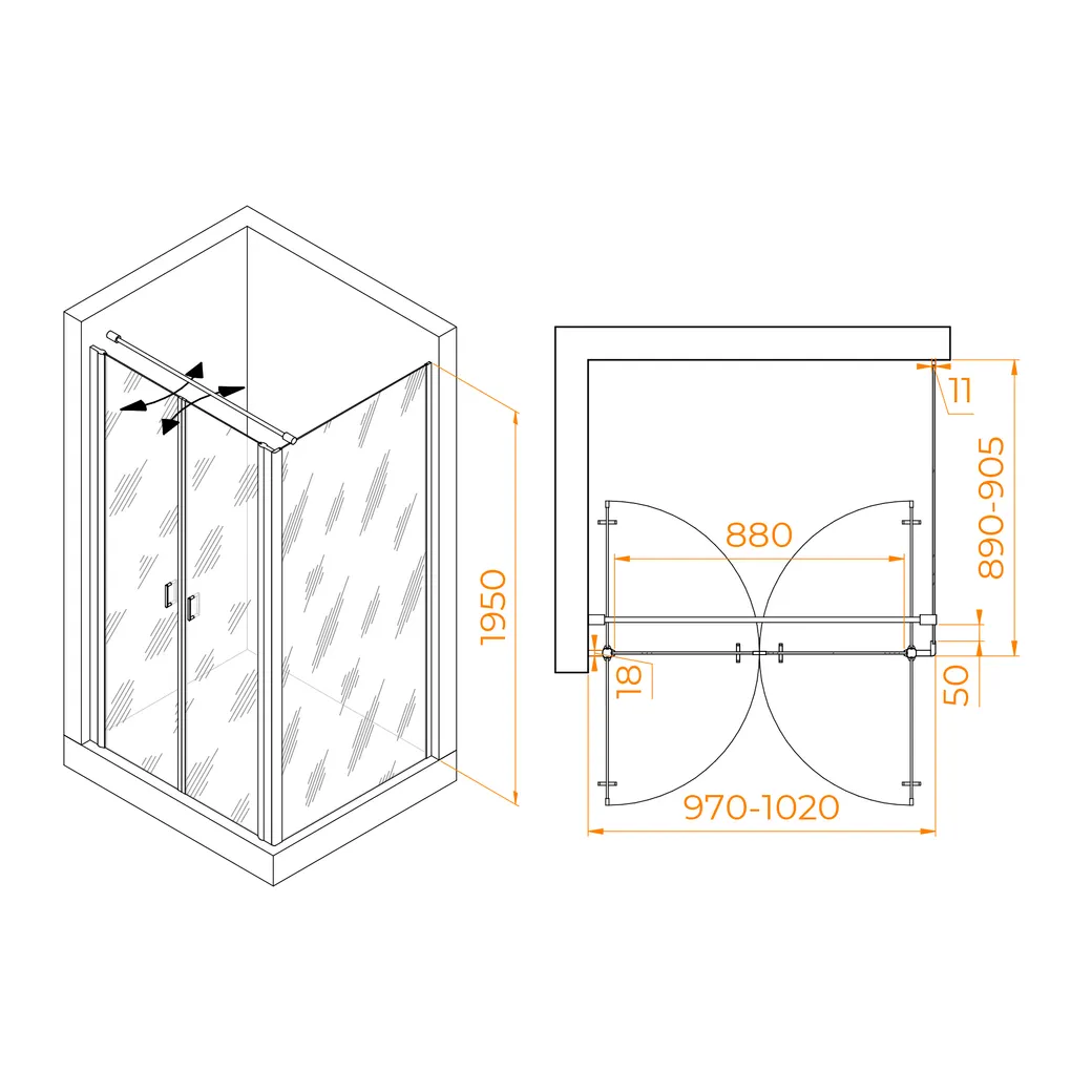 Душевой уголок RGW PA-144 (PA-104+Z-050-2+O-104) 1000x900 арт-060814409-011