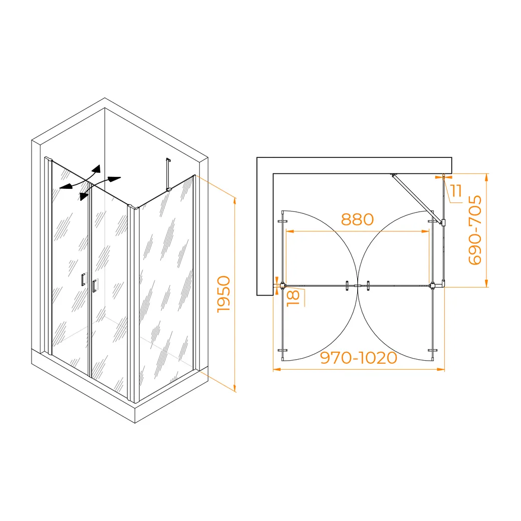 Душевой уголок RGW PA-144 (PA-104+Z-050-2+O-204) 1000x700 060814407-11