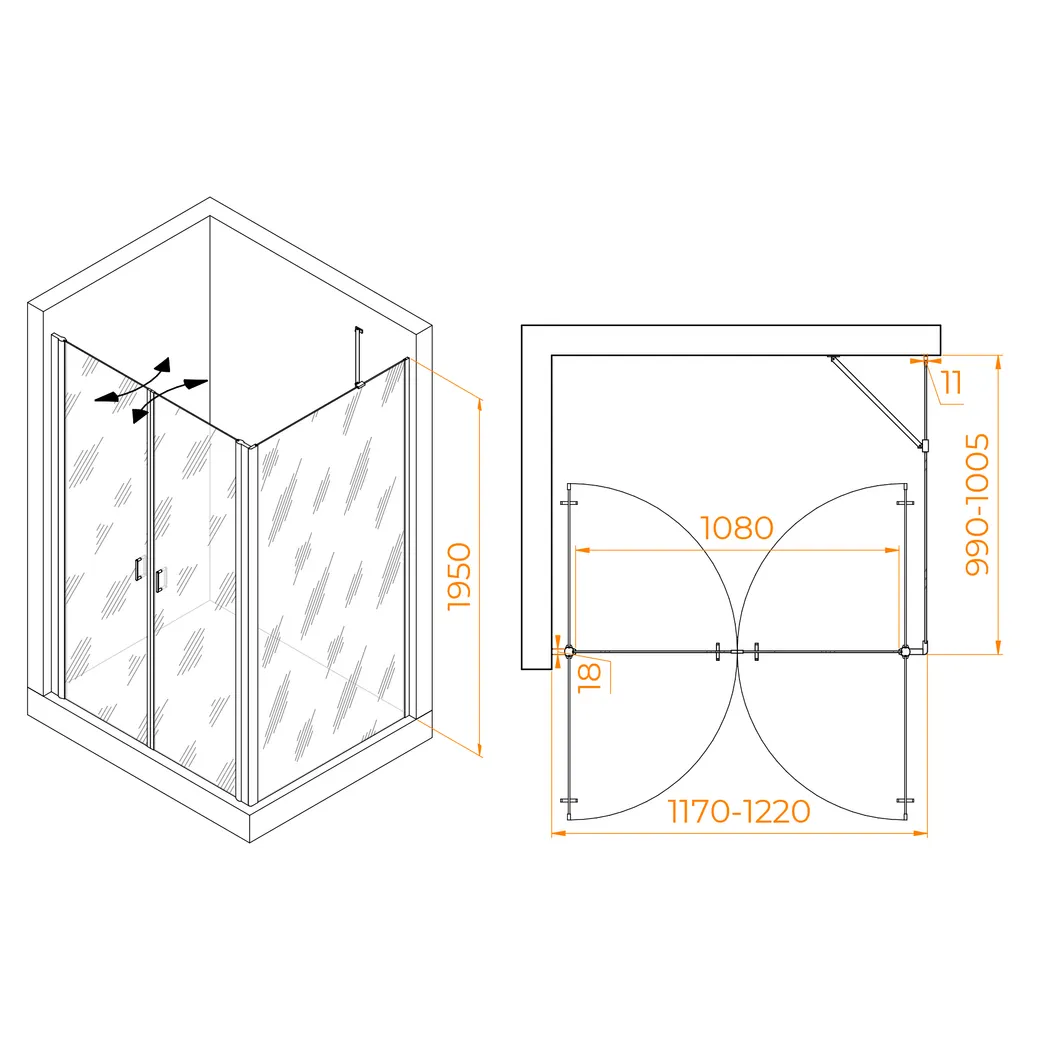 Форма душевого угла прямоугольная, что позволяет оптимально использовать пространство в вашей ванной комнате. Вершины угла округлены, что обеспечивает безопасность и комфорт во время принятия душа.
