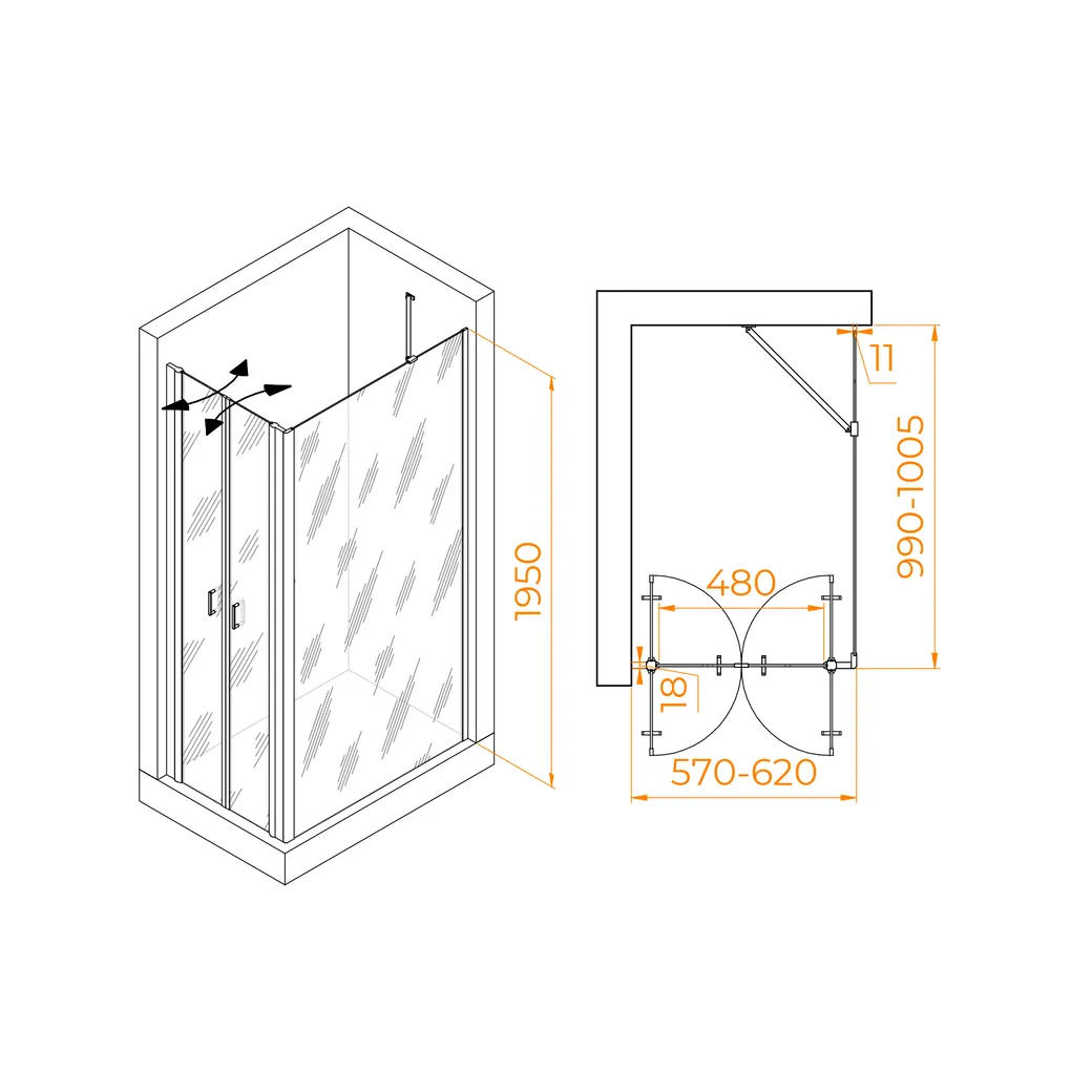 Душевой уголок RGW PA-144 (PA-104+Z-050-2+O-204) 600x1000 060814460-11
