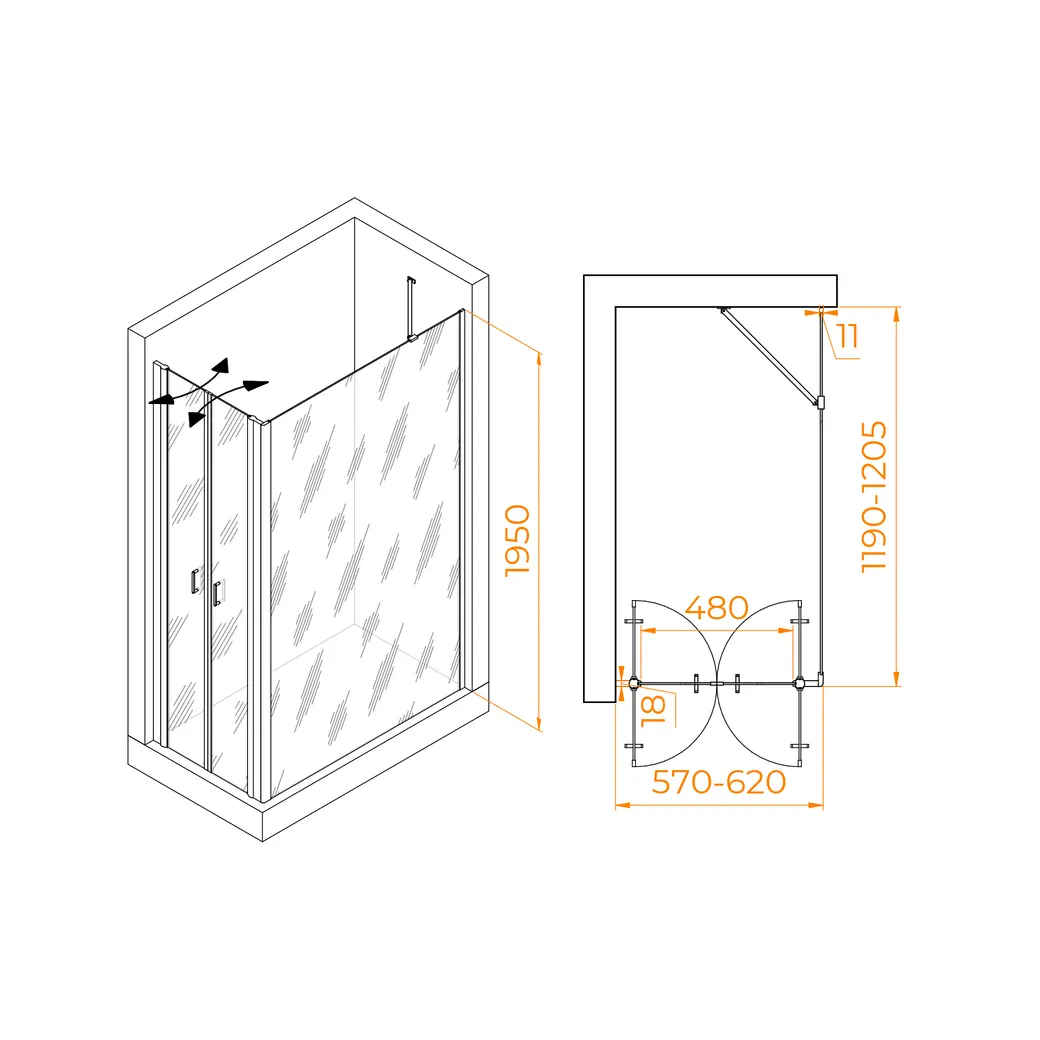 Душевой уголок RGW PA-144 (PA-104+Z-050-2+O-204) 600x1200 арт-060814462-11