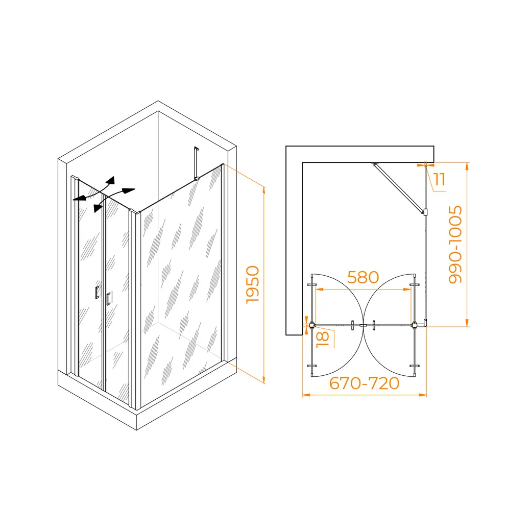 Высота душевого угла составляет 1950 мм, что позволяет легко войти и выйти из него. Это особенно важно для людей с ограниченной подвижностью или маленькими детьми.
