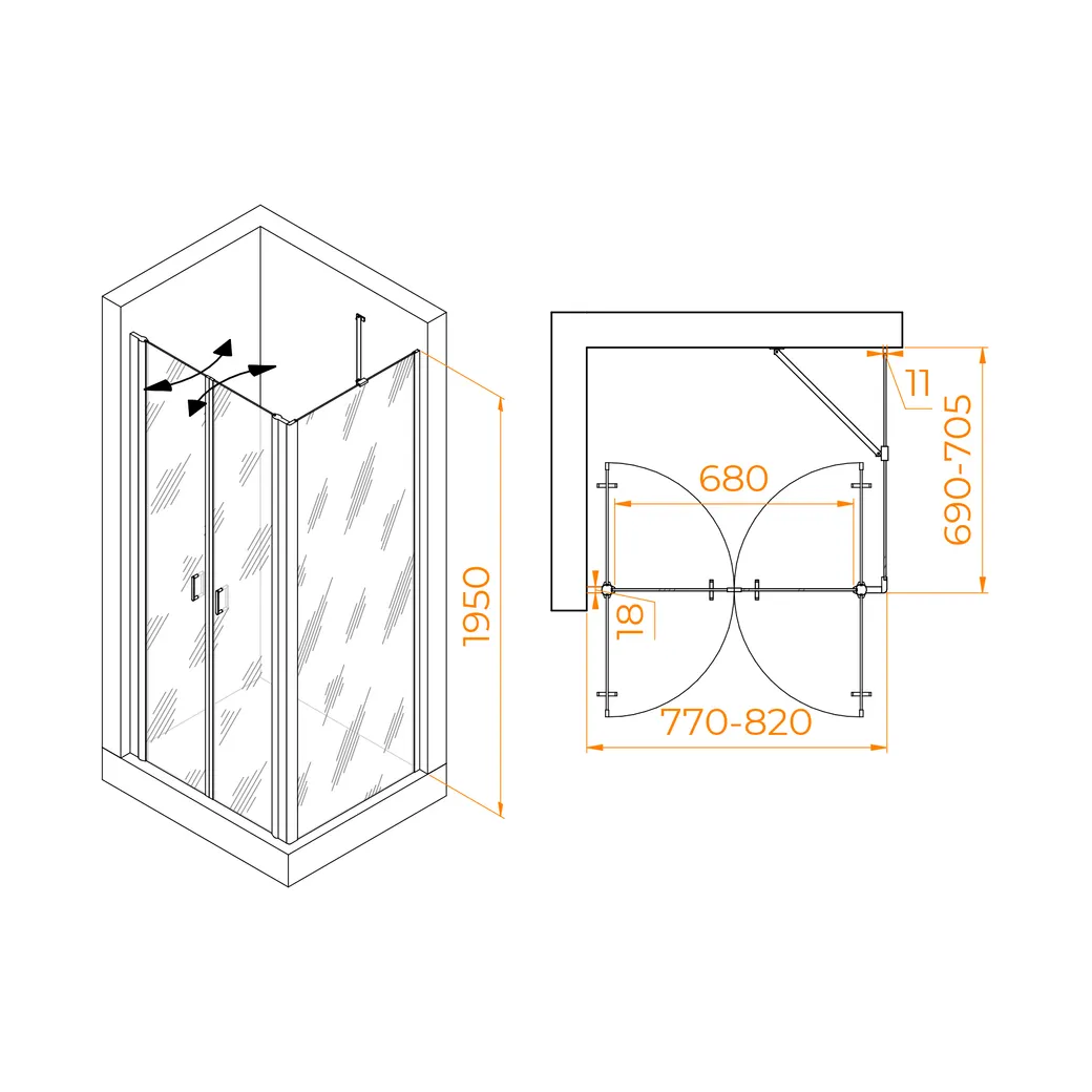 Высота душевого угла составляет 1950 мм, что позволяет легко войти и выйти из него. Это особенно важно для людей с ограниченной подвижностью или маленькими детьми.
