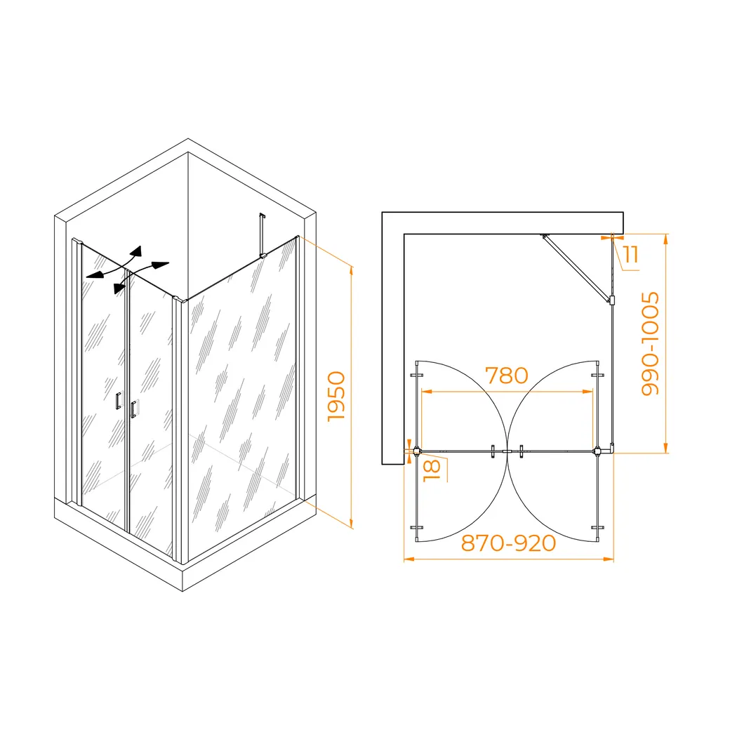 Душевой уголок RGW PA-144 (PA-104+Z-050-2+O-204) 900x1000 060814490-11