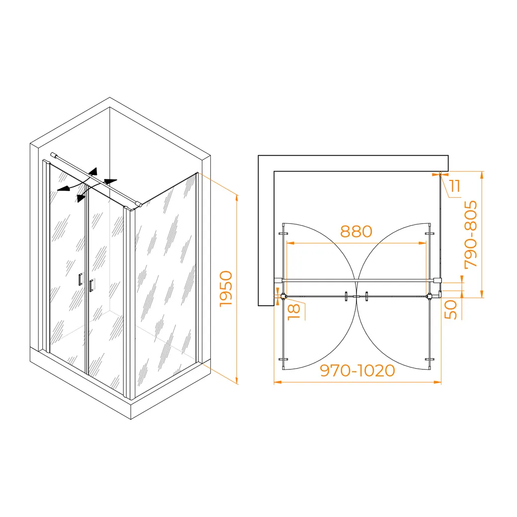 Душевой уголок RGW PA-144B (PA-104B+Z-050-2B+O-104B) 1000x800 060814408-014