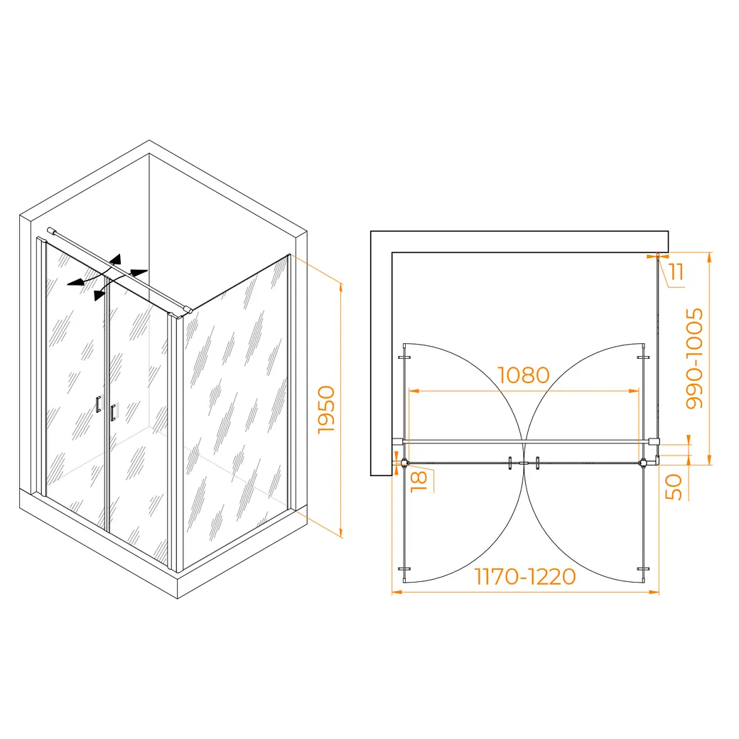 Душевой уголок RGW PA-144B (PA-104B+Z-050-2B+O-104B) 1200x1000 арт-060814420-014