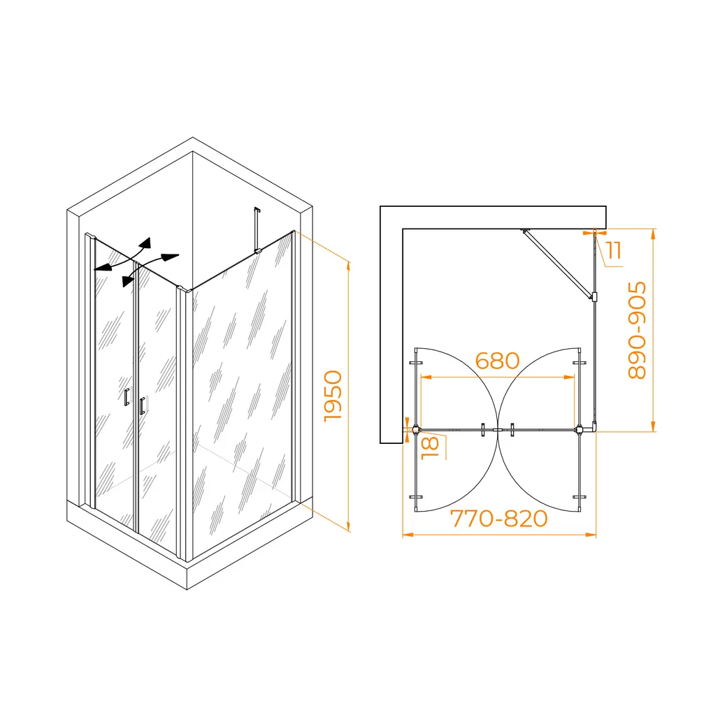 Душевой уголок RGW PA-144B (PA-104B+Z-050-2B+O-204B) 800x900 060814489-14