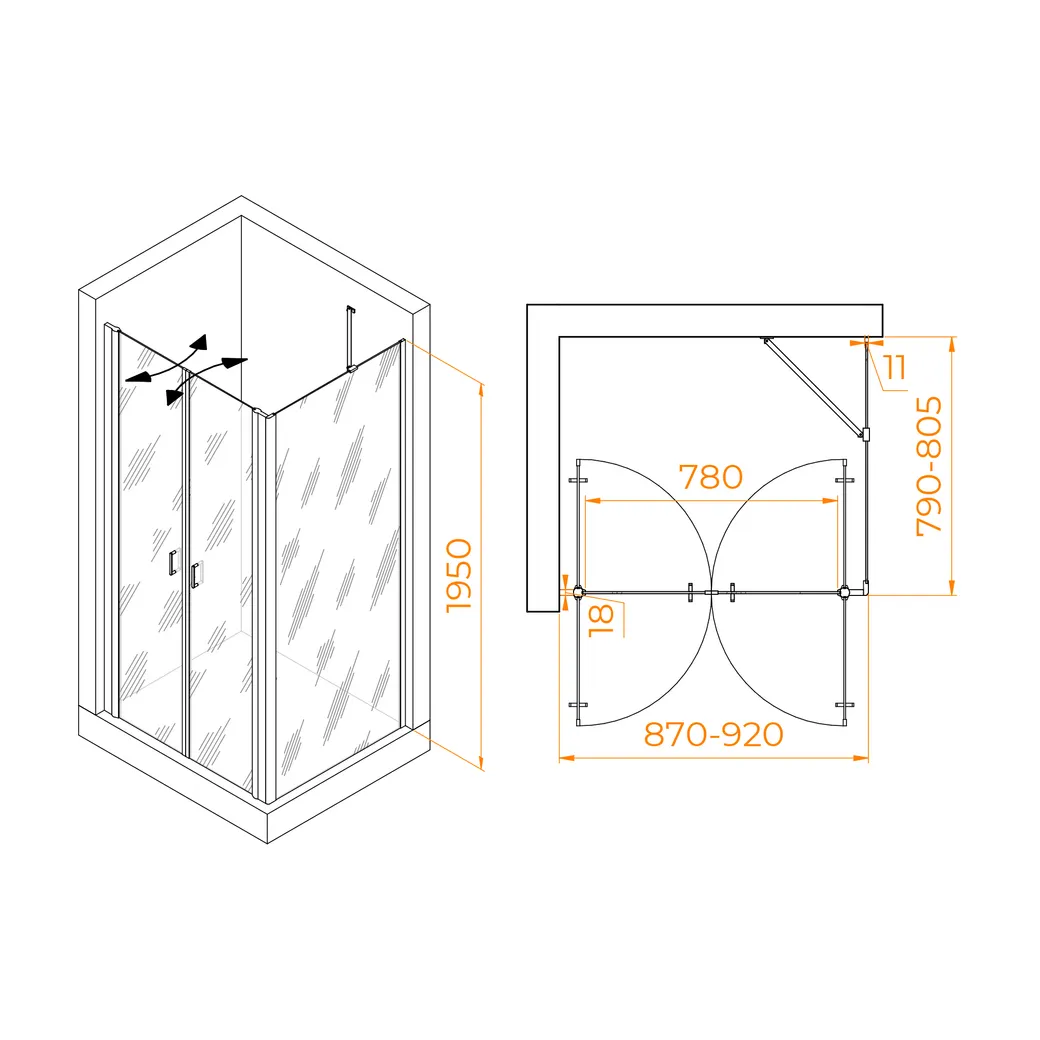 Душевой уголок RGW PA-144B (PA-104B+Z-050-2B+O-204B) 900x800 060814498-14