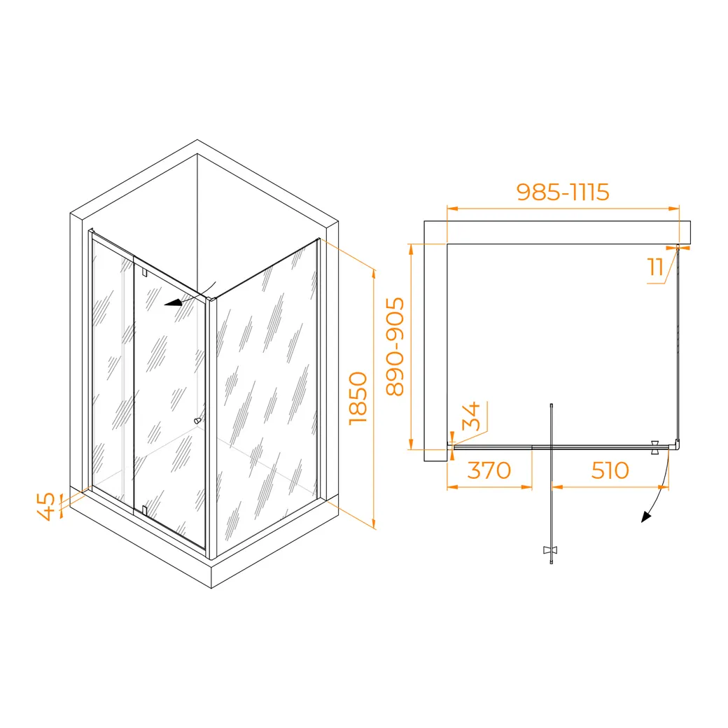 Конструкция дверей душевого уголка распашная, что облегчает доступ и создает дополнительное пространство в ванной комнате. Стекло прозрачное и покрыто антикапельной технологией Easy Clean, что делает его легким в уходе и обеспечивает чистоту и прозрачность стекла.