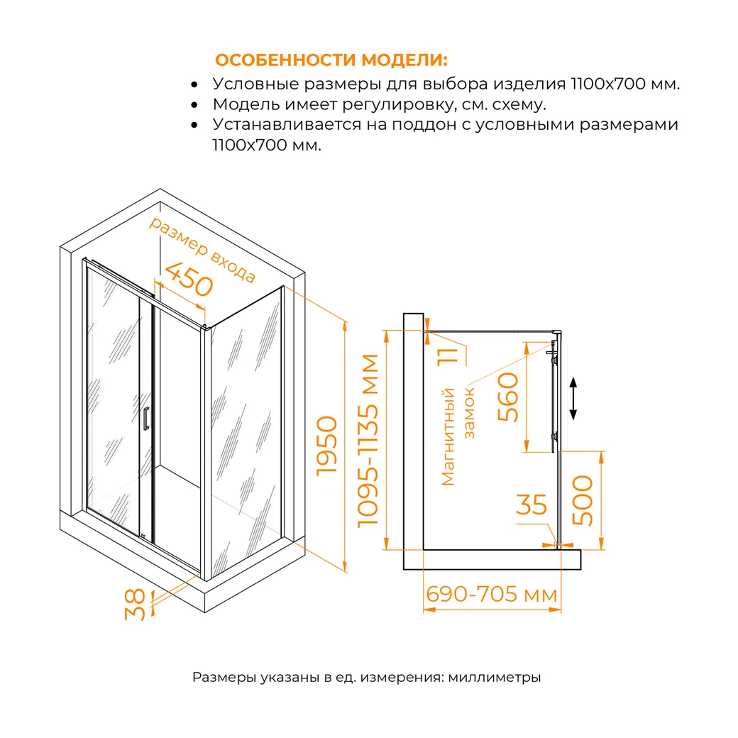 Душевой уголок RGW PA-74 (PA-14 + Z-050-2) 1100x700 арт-410874117-11