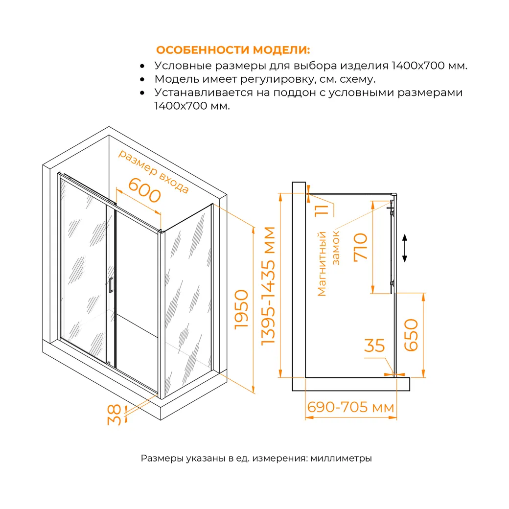 Душевой уголок RGW PA-74 (PA-14 + Z-050-2) 1400x700 арт-410874147-11