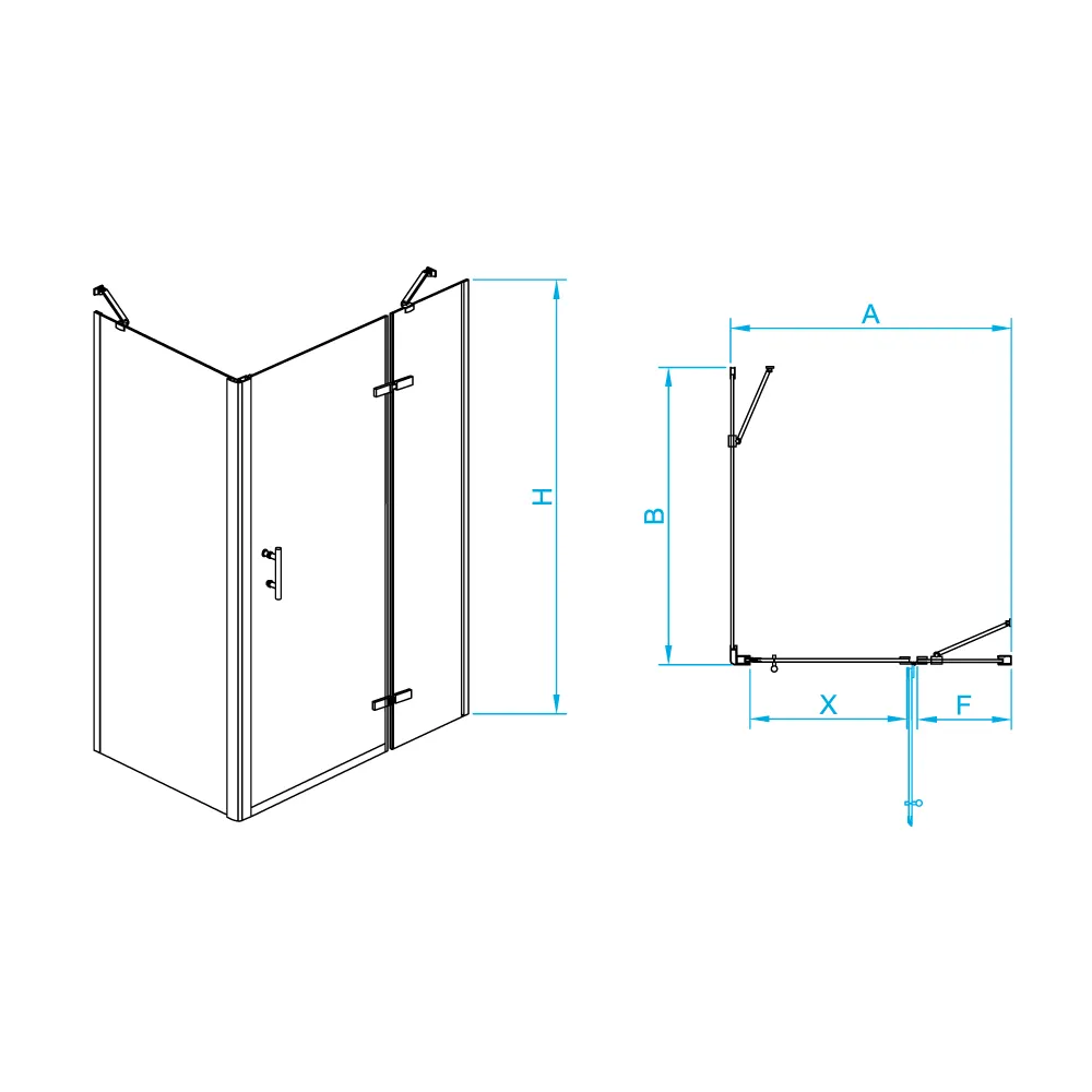Конструкция дверей данного уголка распашная, что обеспечивает удобство в использовании и свободный доступ внутрь душевой кабины. Материал профиля – анодированный алюминий – является очень прочным и надежным для использования во влажных условиях. Также у профиля есть регулируемые элементы, что позволяет более точно подобрать необходимые размеры душевого уголка под конкретное помещение.