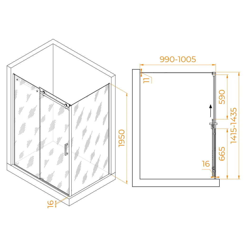 Душевой уголок RGW TO-44-1B (TO-14B + Z-060-2B) 1400x1000 020744140-14